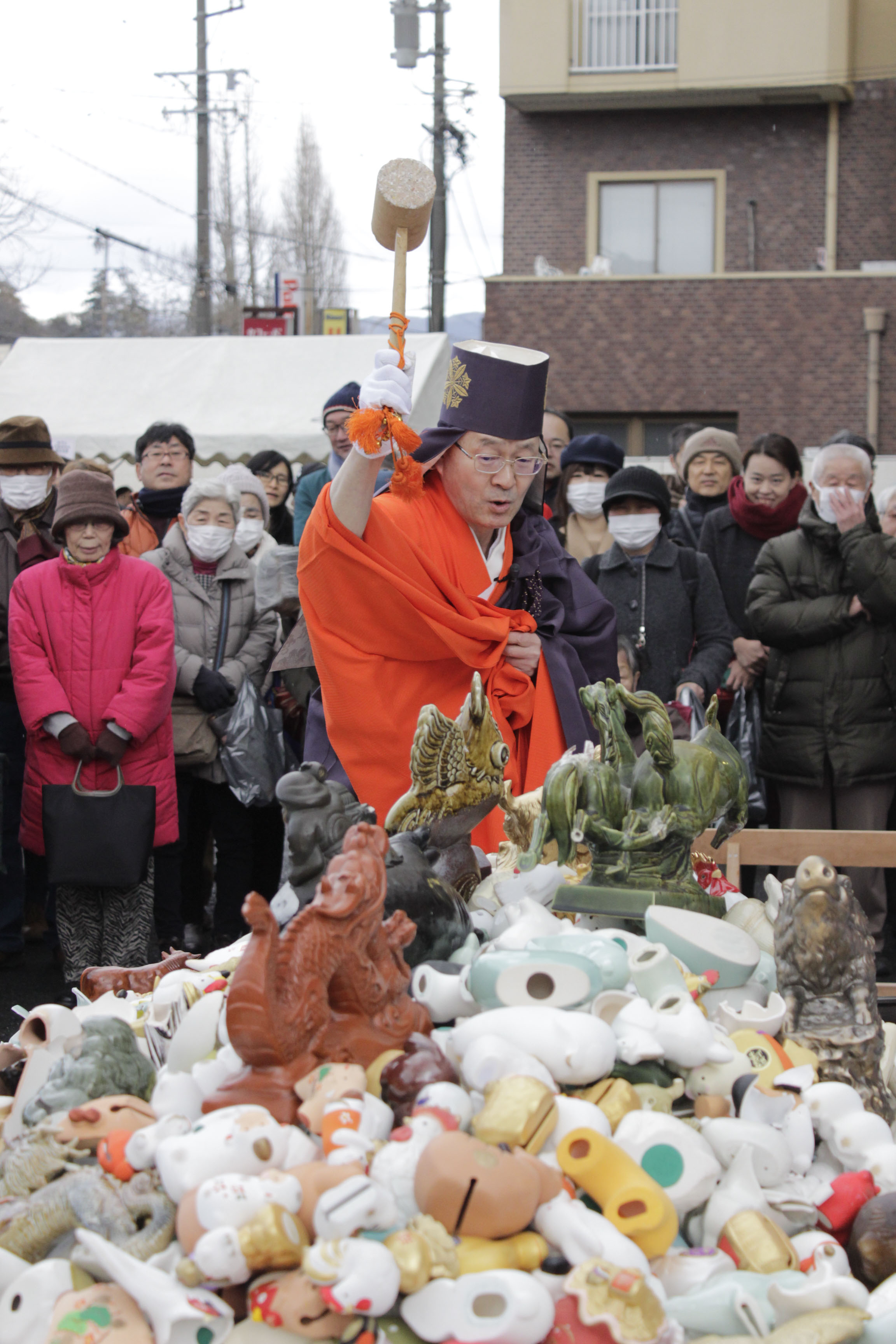 私たちの暮らしを一年間見守り、心をなごませてくれる干支置物。中外陶園では、毎年数多くの干支置物を製造するメーカーとして、干支置物の処分にお困りの方のために、役目を終えた干支を感謝の気持ちとともに元の土に還す「干支供養」を行っております。供養は、薬師窯ゆかりの宝泉寺ご住職に導師をお願いし、毎年2月11日の11時〈土(つち)の日・土(つち)の時〉に開催しております。なお、この行事は日本記念日協会から「干支供養の日」に制定されました。